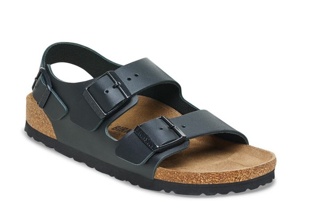 BIRKENSTOCK MILANO SANDALS NATURAL LEATHER BLACK REGULAR