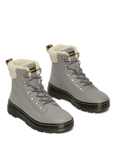 Warm and winter-ready from the first step. This new fur-lined version of our Combs W utility boot is crafted from Oiled Full Grain leather with a contrasting natural Boogie faux fur lining, so you can take on cold weather in stride. Accented with eye-catching hiker-inspired speckled laces and detailed with brushed silver hardware. Marked with DMs signature yellow stitching and an AirWair heel loop. Oiled Full Grain Leather is a semi-aniline leather with water-resistant properties. Boogie is a soft, natural-looking faux leather. Inspired by utility, with DM attitude. Our relaxed 1 1/2-inch Tract outsole is sturdy and lightweight, with a durable pavement-ready cemented construction and deep lugs for enhanced traction. Made with a comfortable, durable cemented construction. Standard fit recommended for all feet, but perfect for medium width feet.