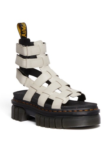 Next-generation sandal. The Ricki Gladiator sits atop our two-piece Quad Neoteric platform, a radical reimagining of our acclaimed Quad sole. It features a lightweight two-piece construction, pronounced notches, and a commanding profile silhouette. Crafted from comfortable Nappa Lux leather, they add even more height with their five-strap silhouette, accented with the iconic yellow and black heel pull and signature yellow stitching. Each pair has a molded antimicrobial cork footbed to keep feet cool all summer long. This new version of our Quad platform emphasizes your height while remaining lightweight. The Quad Neoteric sole measures 1.9 inches, has a lightweight EVA midsole, and a PVC outsole with deep, sturdy lugs. This pair features an updated version of DM's signature tread. Nappa Lux is a classic soft, smooth leather Our SoftWair footbed ensures comfort from the first step
