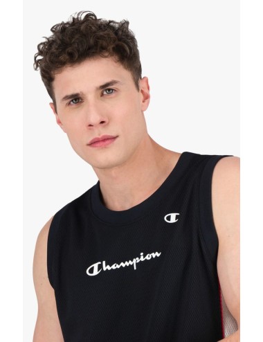 Camiseta de Champion sin mangas en negro para hombre. Ya sea dentro o fuera de la cancha, esta camiseta de malla presenta detalles de bloques de colores llamativos y detalles de logotipos para una apariencia destacada.