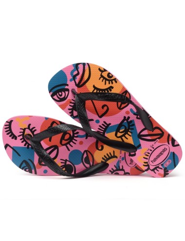 Chanclas de Havaianas Top Cool Crystal Rose. Los colores vibrantes son el fondo de ilustraciones de ojos, narices y bocas que parecen haber sido diseñados a mano. ¡Las Havaianas Top Cool alegran cualquier look!