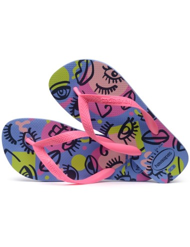 Chanclas de Havaianas Top Cool Provence Blue. Los colores vibrantes son el fondo de ilustraciones de ojos, narices y bocas que parecen haber sido diseñados a mano. ¡Las Havaianas Top Cool alegran cualquier look!