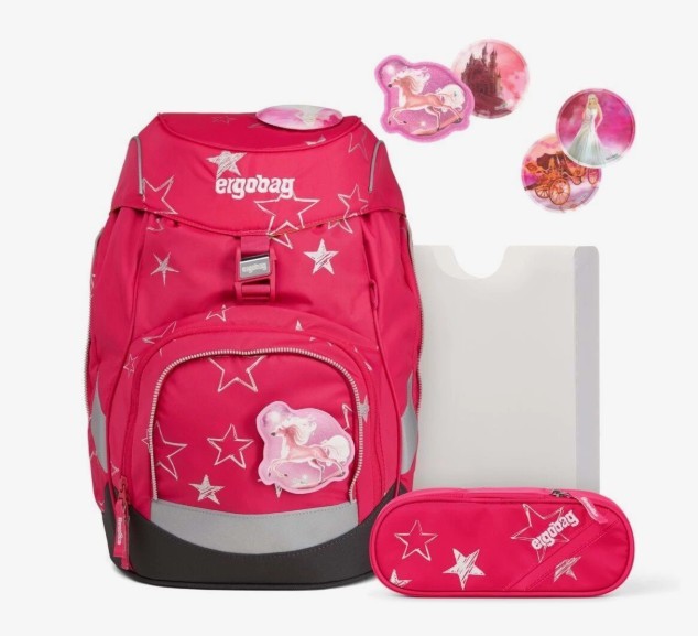Rucsac Ergobag Prime pentru ?coala cu fermoare în fa?a ?i laterale. Setul de rucsac ergonomic pentru ?coala ergobag con?ine: rucsac de ?coala, suport pentru caiet, trusa ?i set de cleme (4 buca?i). Rucsacul de ?coala combina conceptul ergonomic al gen?ilor inovatoare cu tot ce ar trebui sa poata oferi astazi un rucsac de ?coala. Ergobag-ul Prime Set poate fi ajustat pe spate folosind „Sistemul-Marimea Ta” ?i cre?te odata cu înal?imea copilului de la 100 cm la 150 cm. Centura detasabila se infasoara in jurul soldurilor si se adapteaza optim chiar si copiilor mai slabi. In acest fel greutatea este transferata de la umeri in zona pelviana, care este mai stabila. Prime Set ergobag are un sistem inovator de prindere care garanteaza ca greutatea este transportata aproape de spate. Are o închidere frontala magnetica care poate fi u?or deschisa ?i închisa. Buzunarul mare din fa?a are loc pentru o sticla de apa ?i o cutie de prânz. Mediul este important pentru noi to?i: de aceea setul de rucsac pentru ?coala ergobag pack folose?te materiale textile realizate din sticle PET 100% reciclate.