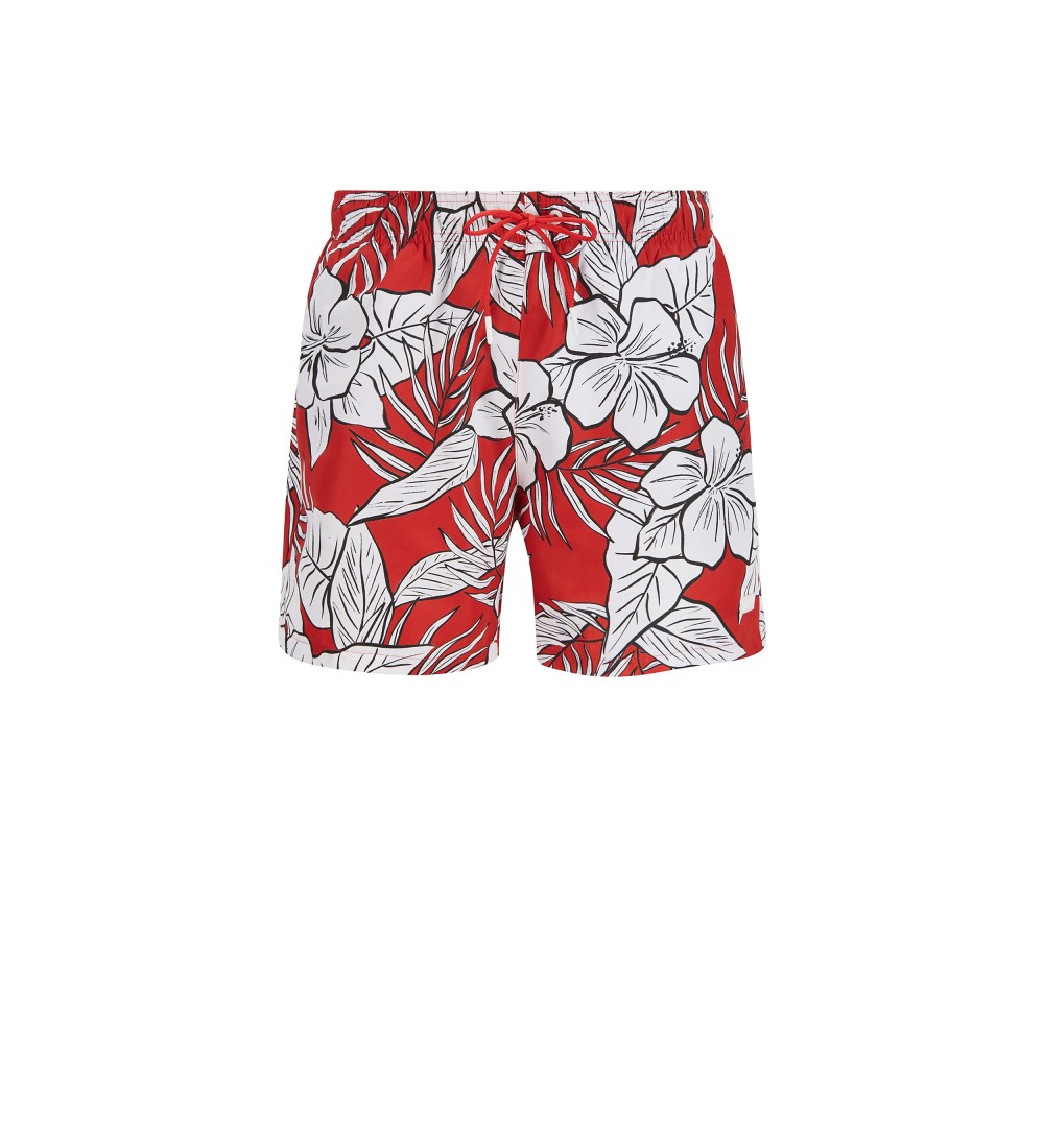 Costum de baie Hugo Boss Piranha la barba?i, proiectat în ?esatura de uscare rapida cu o atingere foarte moale. Acest costum de baie lung de tip scurt mediu prezinta o modelare de frunze de palmier ?i dungi sportive în interior ?i exteriorul taliei. Logo -ul de cauciuc inclus chiar deasupra tivului confera o nota discreta a marcii.